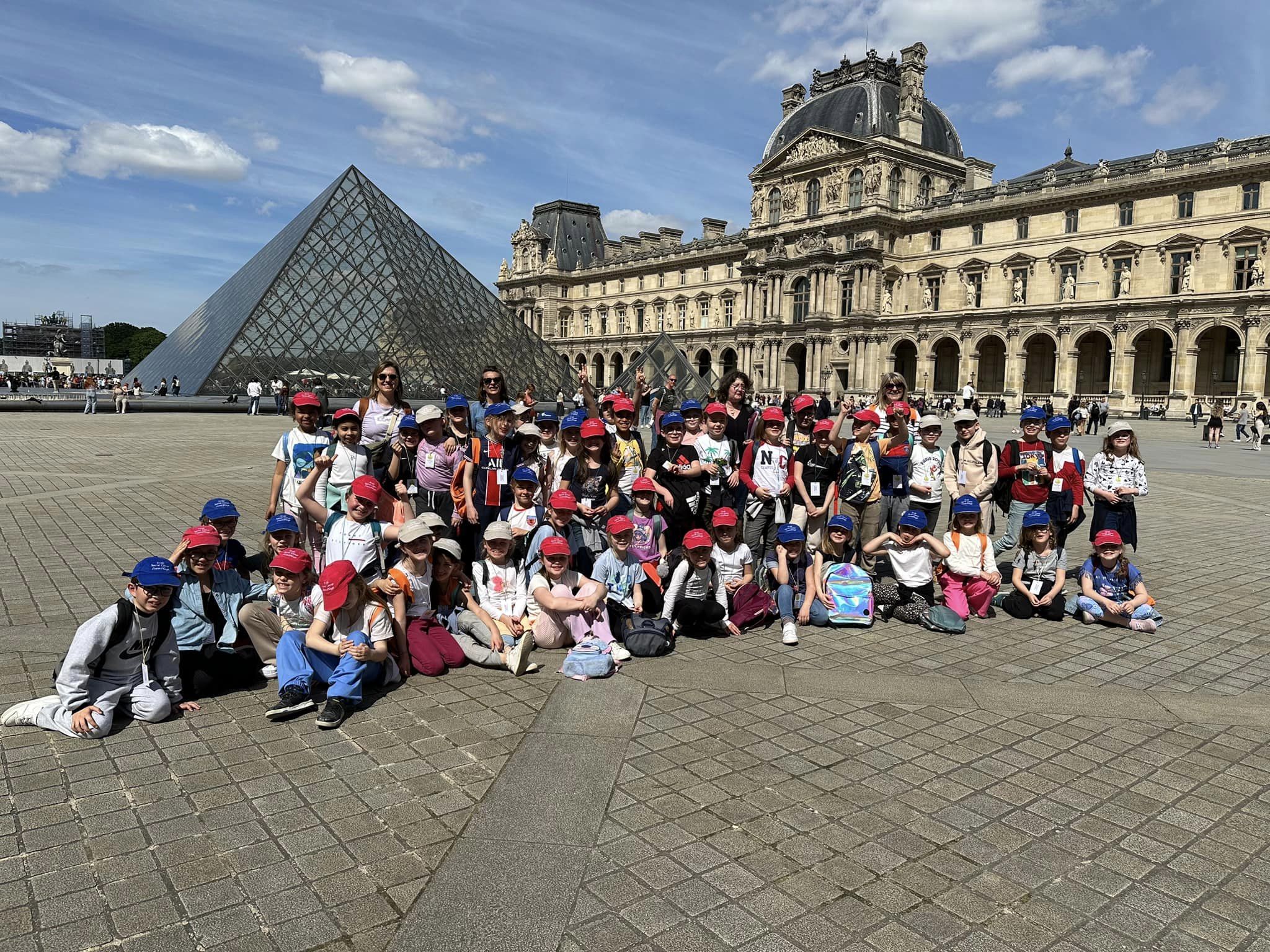 Les enfants ont bien marché et sont contents de se reposer un peu dans le bus avant la balade en bateau mouche.